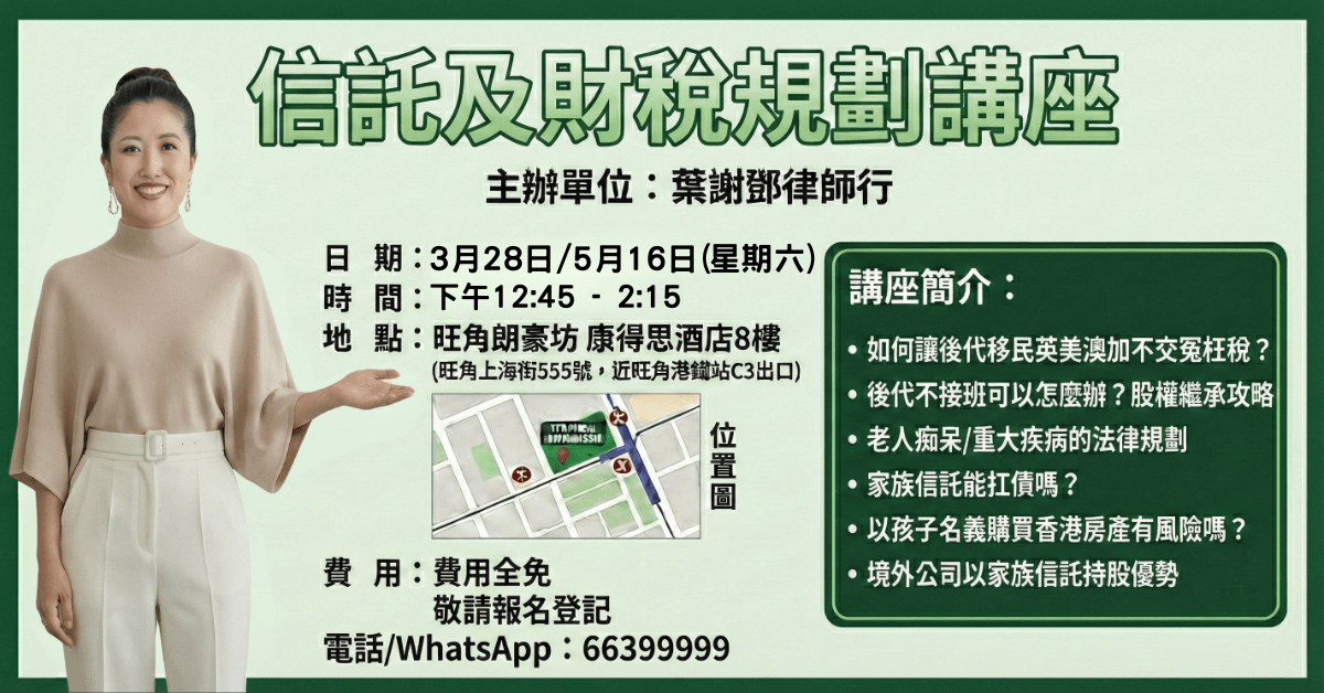 - 度身訂造遺囑:$3000 - $8,000 (視乎複雜性)